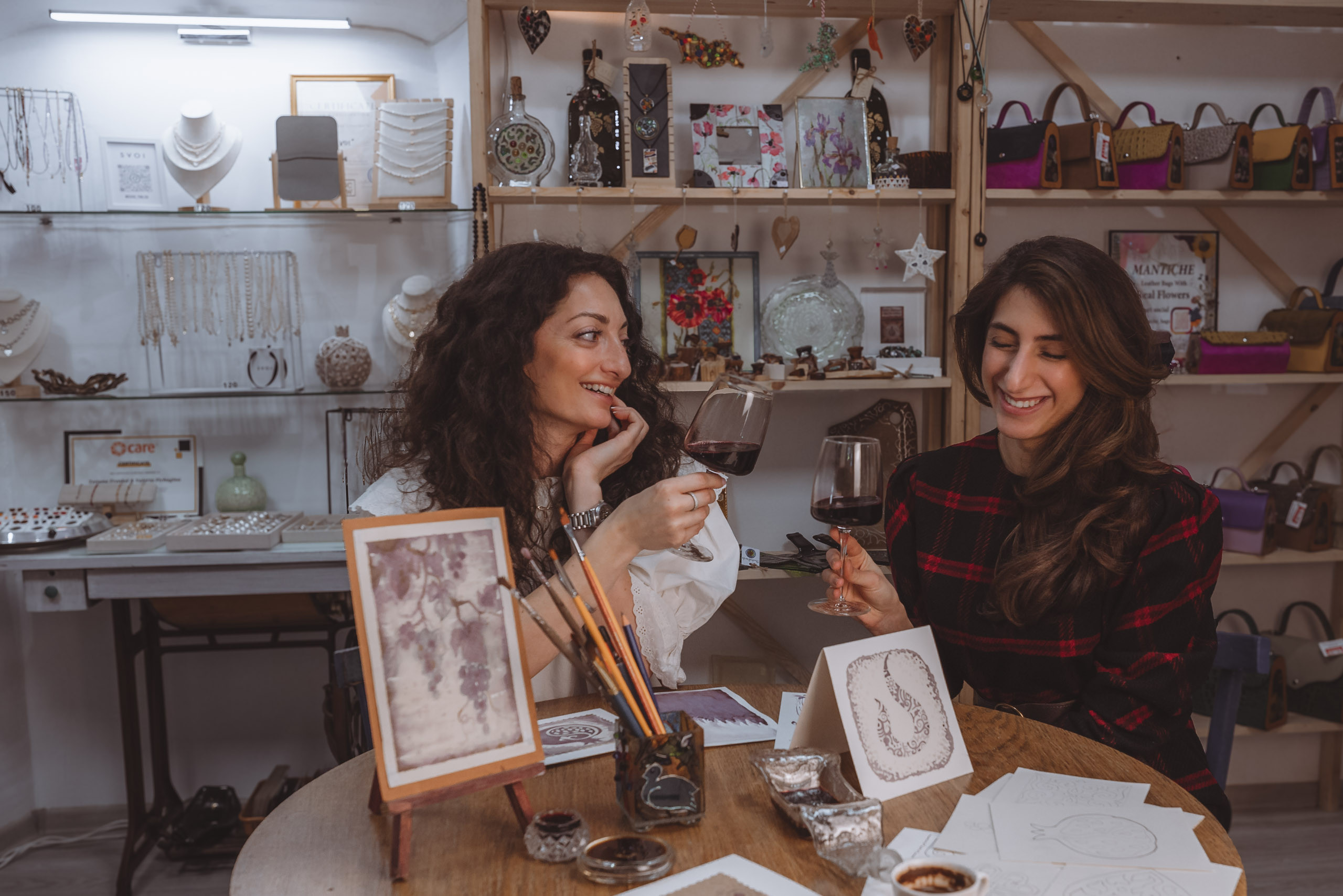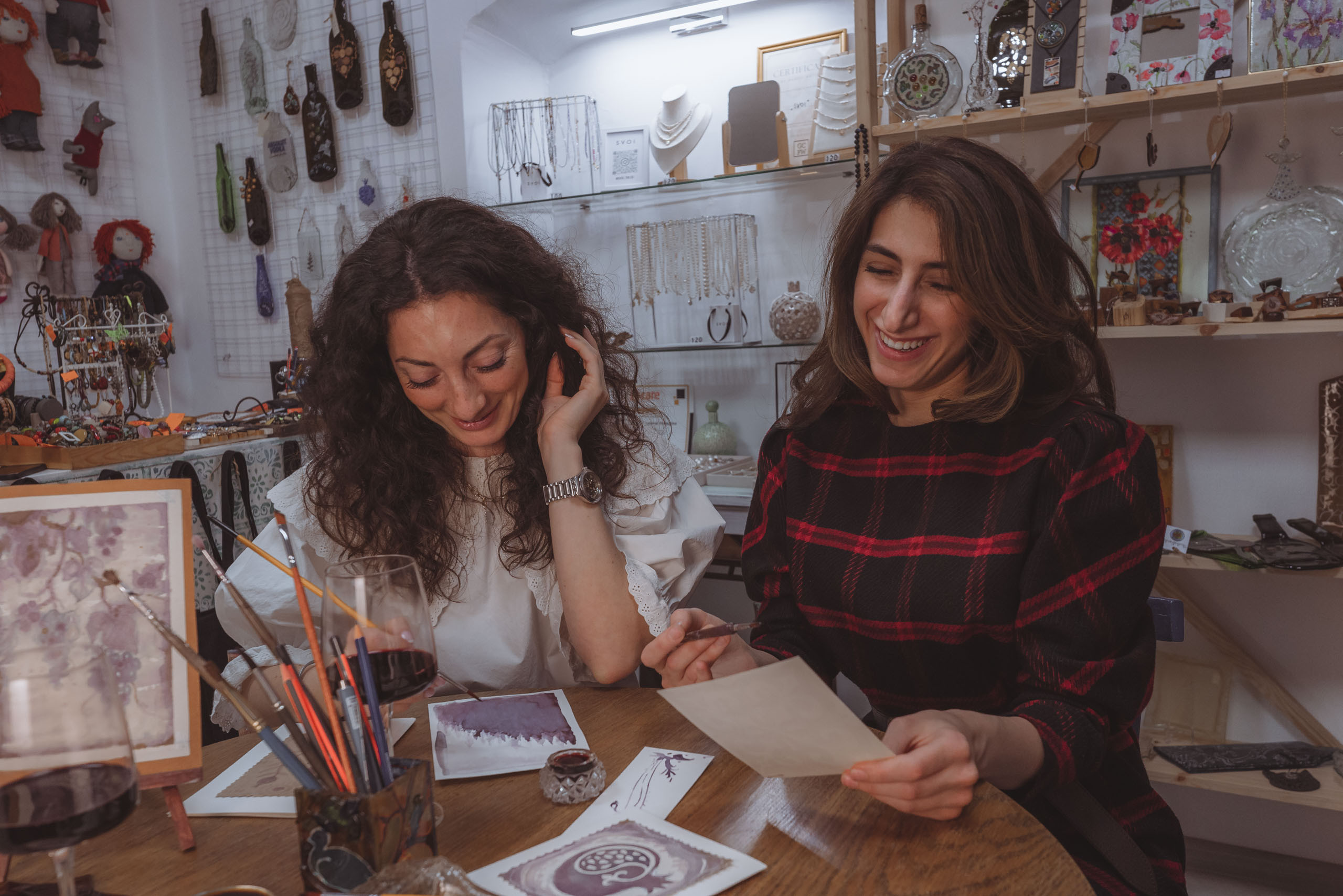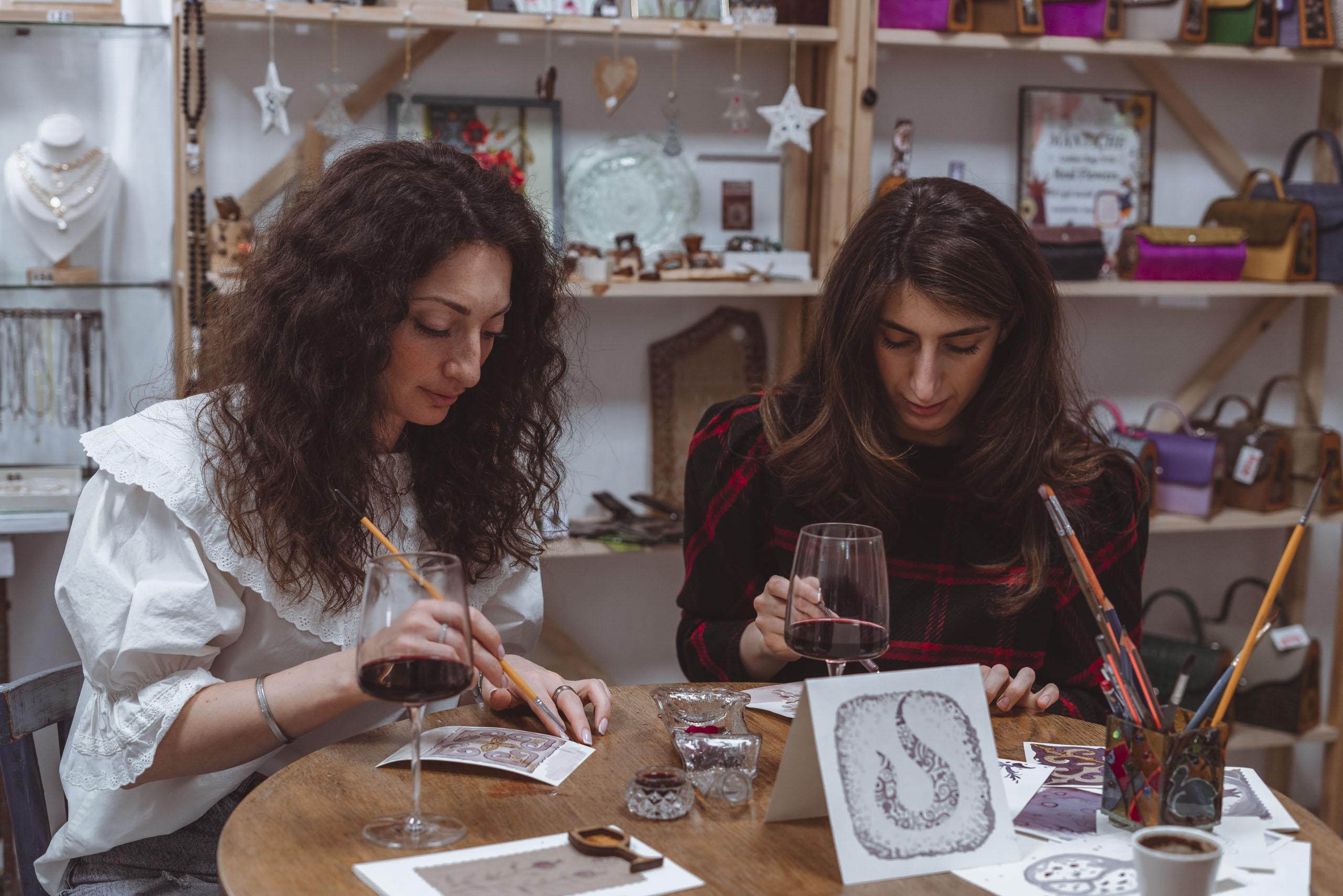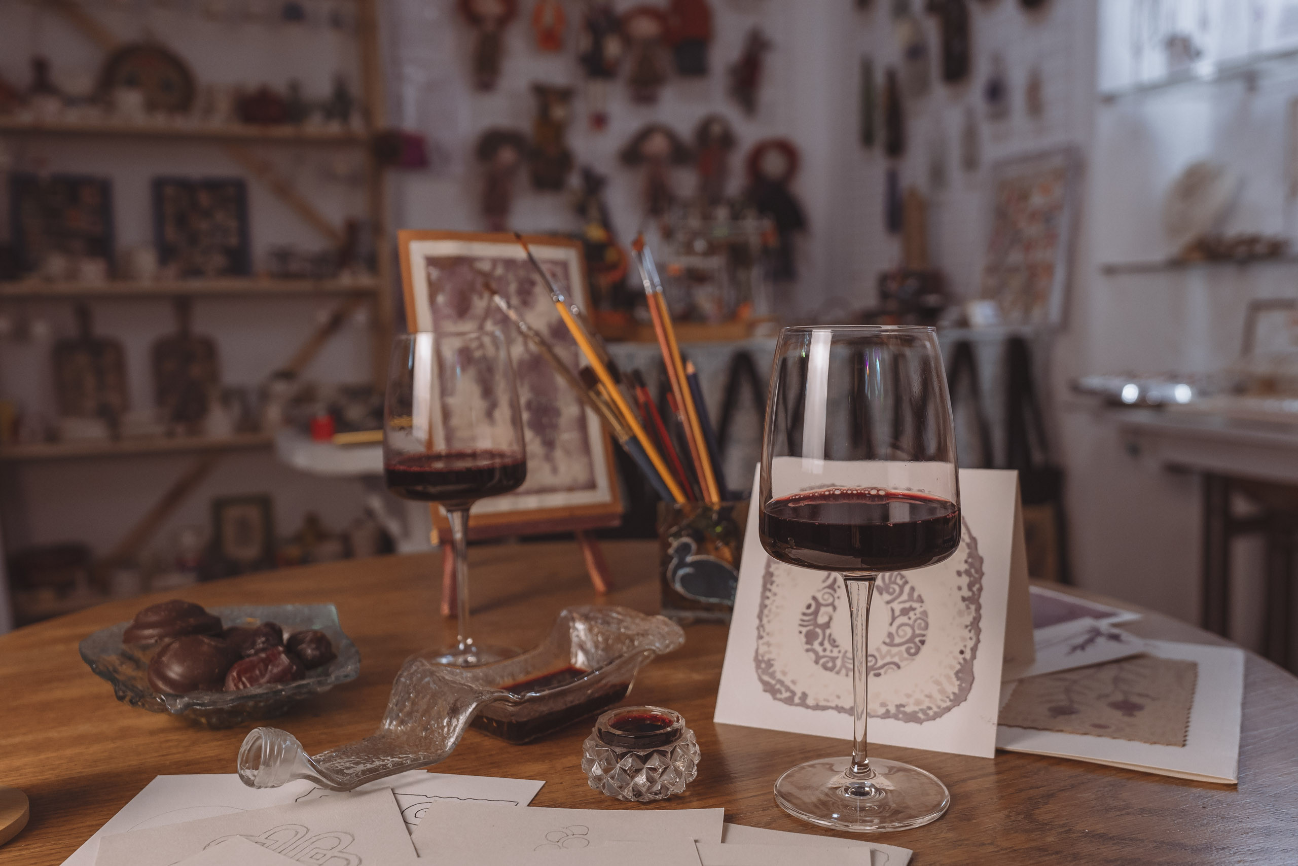 ოსტატი ეტაპობრივად აგიხსნით ნახატის შექმნის სპეციფიკას და ასევე გაგიმასპინძლდებათ „მთავარი ინსტრუმენტებით“ - ღვინით და ყავით.