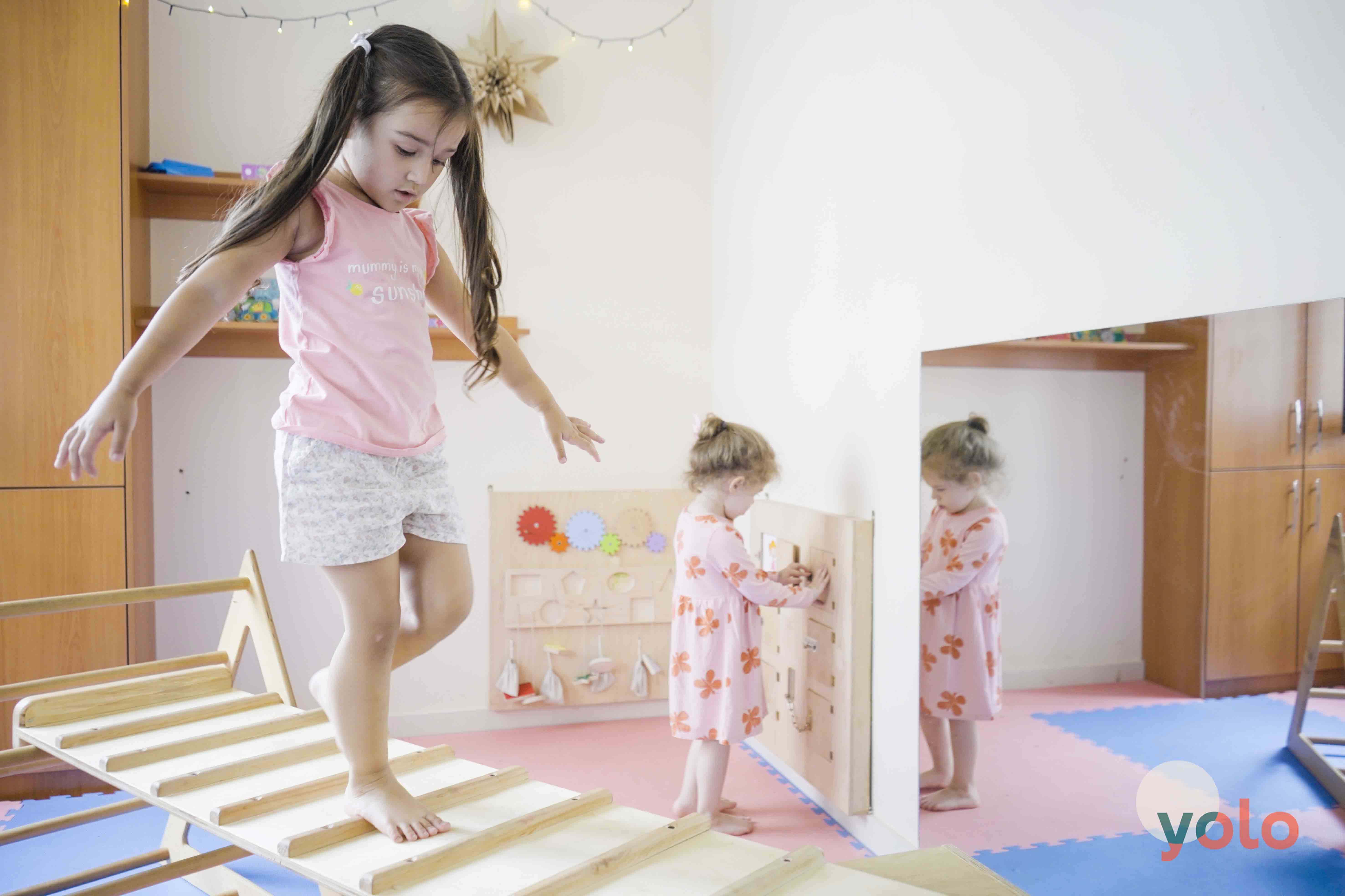 პროფესიონალური აღჭურვილობა და უსაფრთხო გარემო: ჩვენ ვმუშაობთ საავტორო სერტიფიცირებული სპორტული ინვენტარით, რომელიც სპეციალურად შექმნილია ან შერჩეულია ბავშვების სენსომოტორული განვითარებისთვის.
