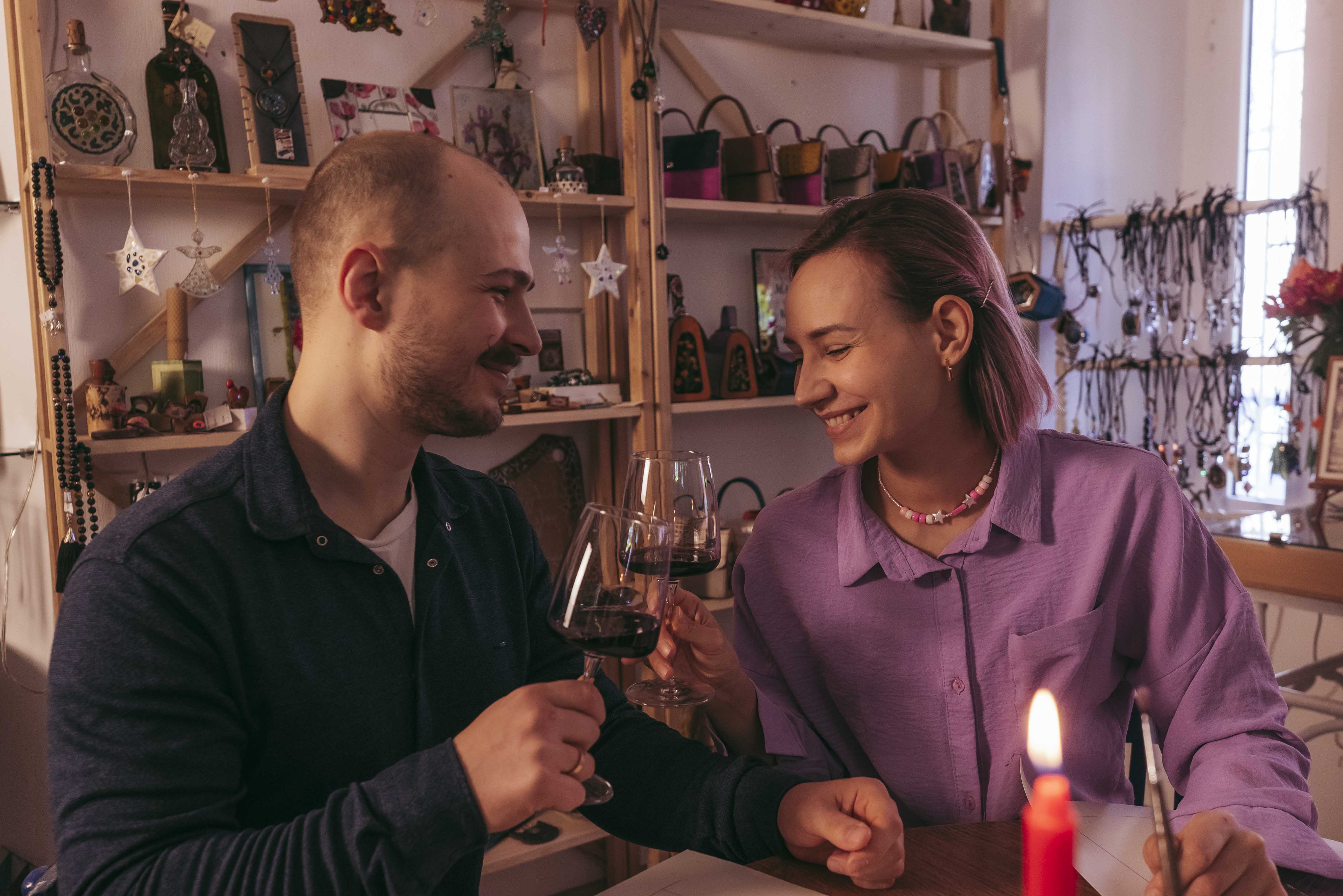ლამაზი ღვინის სასმისები, რომანტიკული ატმოსფერო და სასიამოვნო მუსიკა შეგიქმნით სწორ განწყობას.შექმენით ღვინით უნიკალური და განსაკუთრებული ნამუშევარი თქვენი წყვილისთვის.