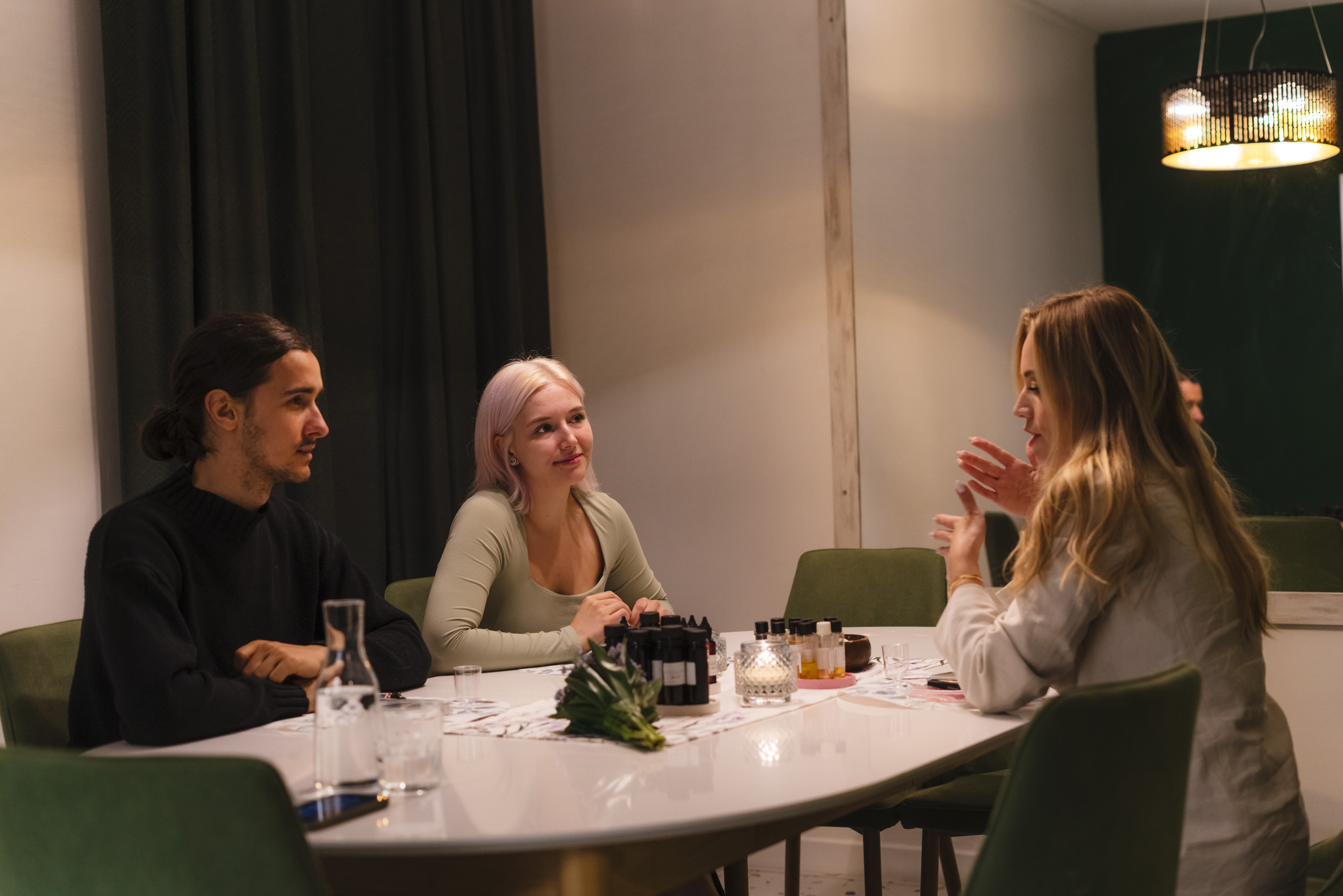 შექმენით უნიკალური ბუნებრივი სუნამო თქვენს საყვარელ ადამიანებთან ერთად,გაეცანით ნატურალური არომატების სამყაროს! სტუმრები შექმნიან 2 სუნამო ვარიანტს ერთმანეთისთვის/ საკუთარი თავისთვის/ერთ დიდ სუნამოს წყვილისთვის. მასტერკლასი მოიცავს თეორიულ და პრაქტიკულ ნაწილს პარფიუმერიის, სურნელოვანი დეგუსტაციისა და საკუთარი უნიკალური მყარი სურნელების შექმნის შესახებ. მასტერკლასის ბოლოს კი სტუმრები დააწერენ უნიკალურ სახელს პარფიუმის ეტიკეტზე. ყველა მასალა შედის ფასში.