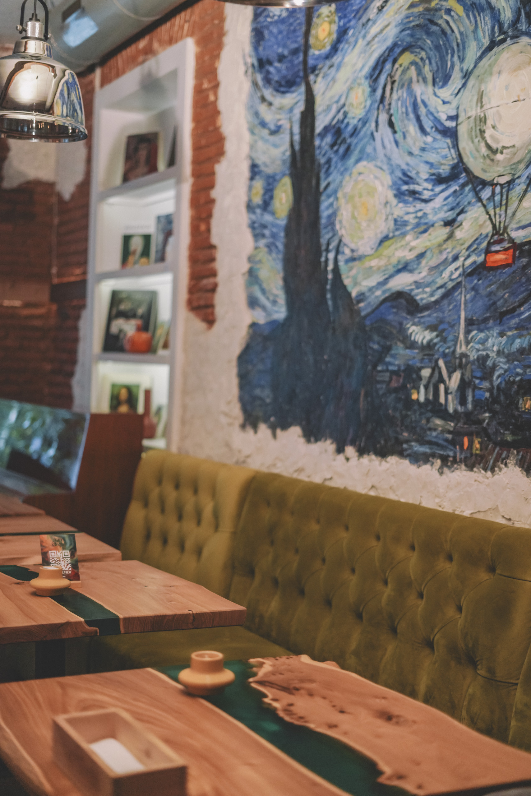 ვინსენტ ვან გოგის "კაფე ტერასა ღამით" რჩება შედევრად, რომელიც დღემდე აოცებს ხელოვნების მოყვარულებს მთელს მსოფლიოში. ვან გოგის რესტორანში იგრძენით თავი ცნობილი შედევრის ნაწილად: ეს ჯადოსნური ნახატი, თავისი ცოცხალი ფერებითა და კაფეს სცენის დინამიური გამოსახულებით, განასახიერებს ცხოვრების არსს მე-19 საუკუნის საფრანგეთში. დააგემოვნეთ საავტორი სამზარეულოს 5 გამორჩეული კერძი და ისიამოვნეთ ატმოსფეროთი თქვენს საყვარელ ადამიანებთან ერთად!