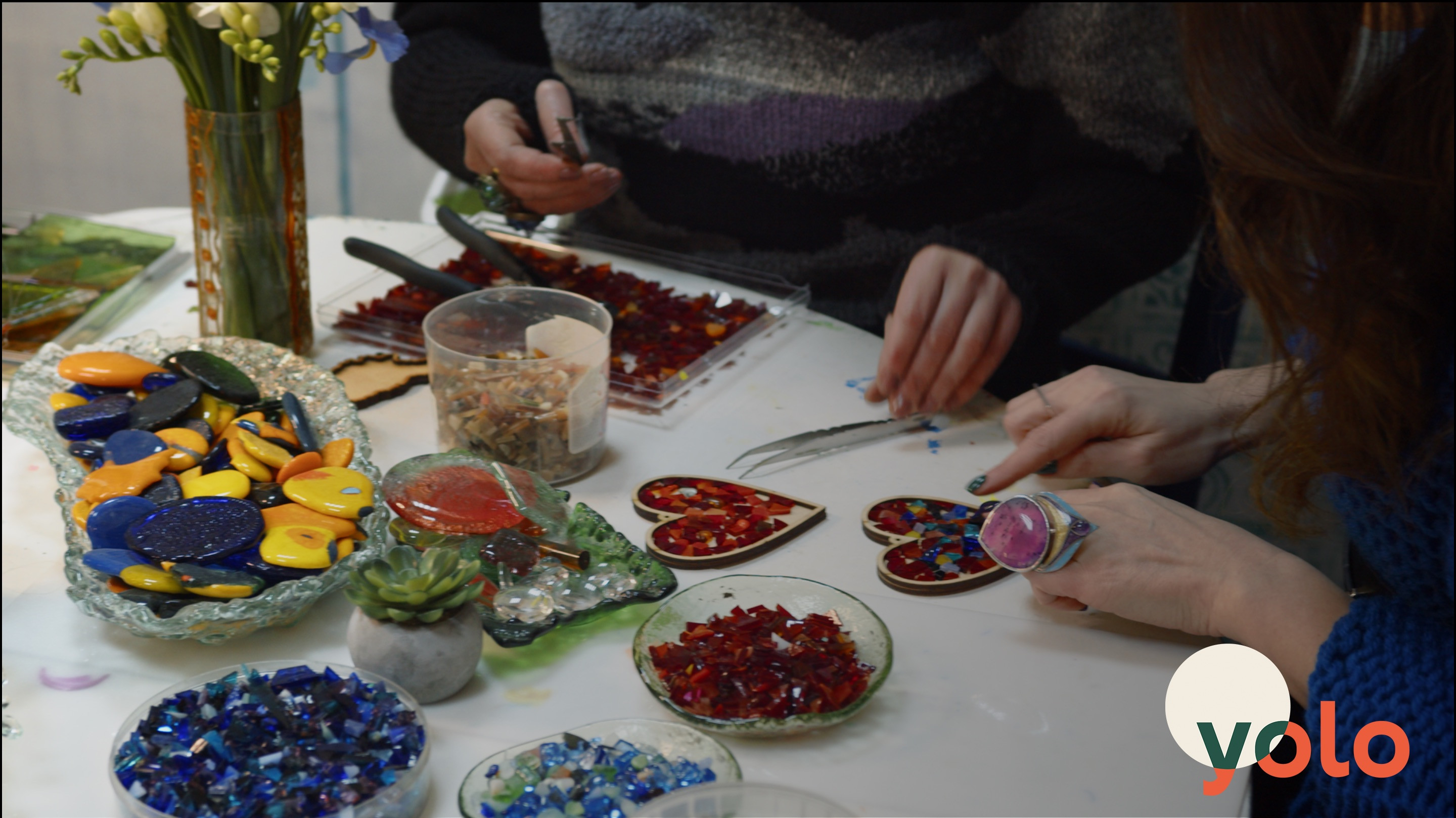 ხელოვნების ობიექტის შექმნა ვიტრაჟის მხატვრობის ელემენტებით ან ფერადი მინის მოზაიკის ელემენტებით, და ნეგატიური ემოციების განთავისუფლება ბოთლის დამსხვრევით სპეციალურ აღჭურვილობაში. ხანგრძლივობა - 2 საათი